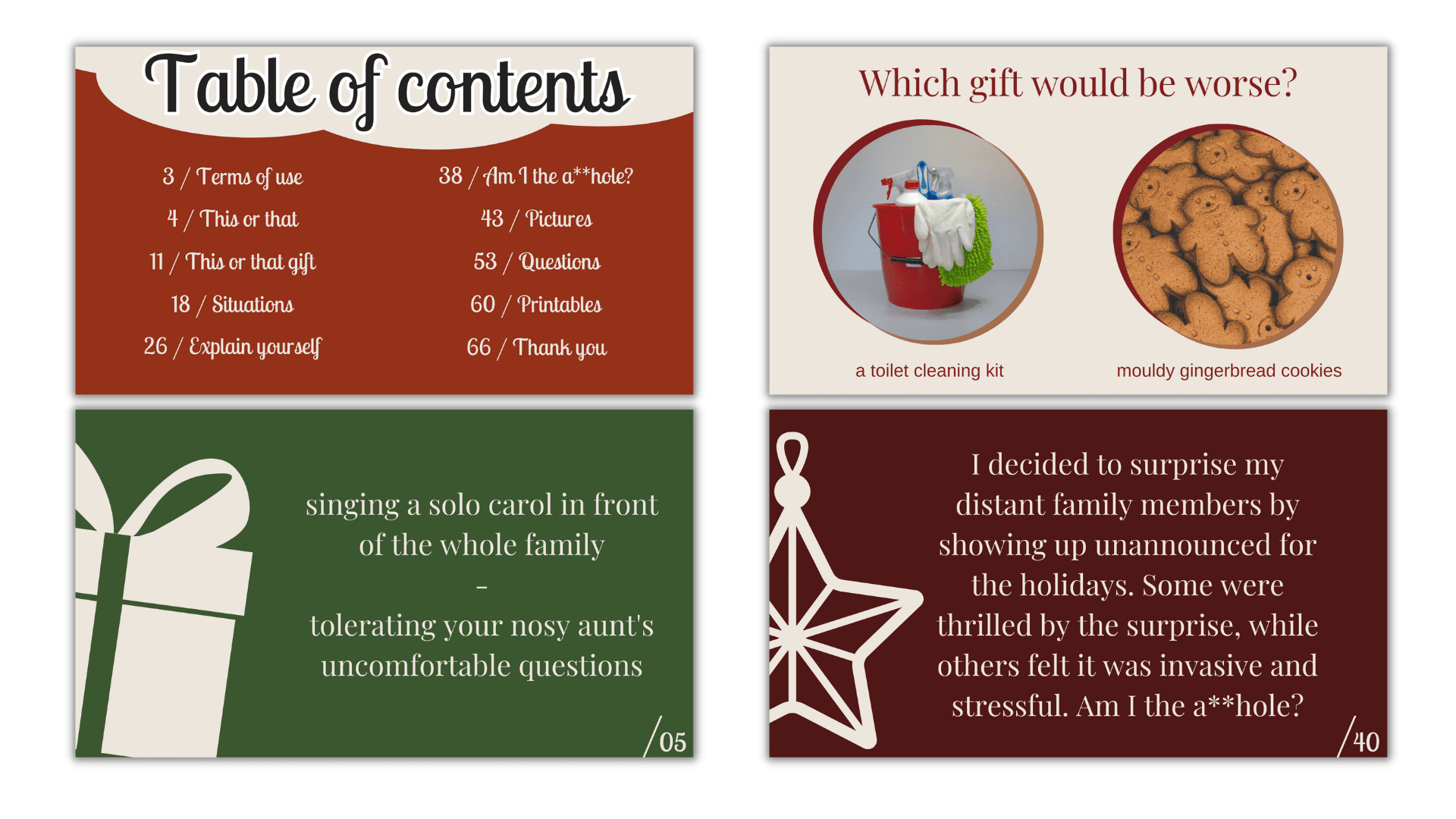 Awkward Christmas to konwersacyjny materiał zawierający same zabawne, nieudane, krępujące sytuacje świąteczne. Lekkie rozmowy o nieudanych prezentach, wpadkach świątecznych i irytujących krewnych. Awkward Christmas to przepis na nietypową i wciągającą lekcję świąteczną.